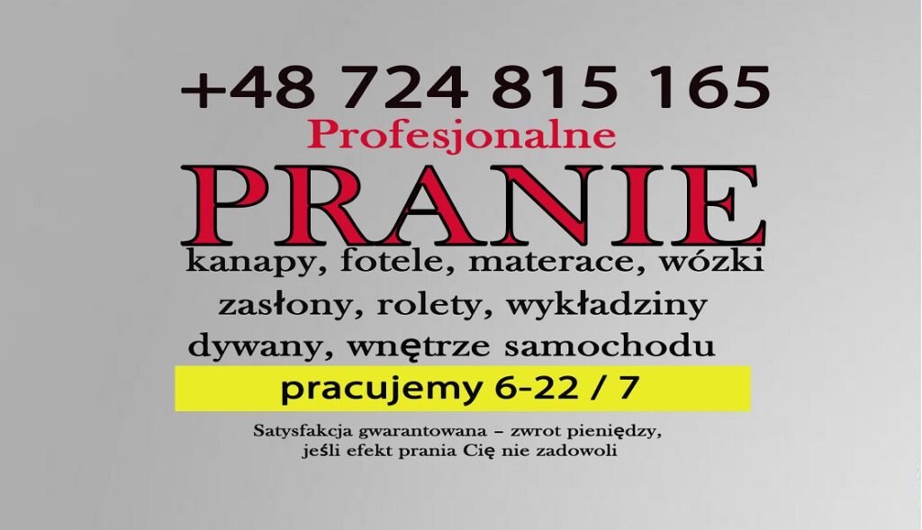 Profesjonalne pranie mebli, materacy, wózków, zasłon, rolet, wykładzin, dywanów i tapicerki samochodowej.